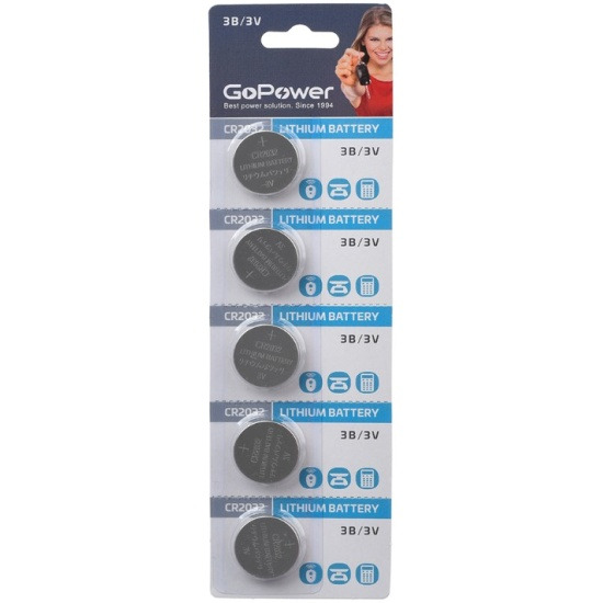 Батарейка GoPower CR2032 BL5 Lithium 3V (5/100/2000)