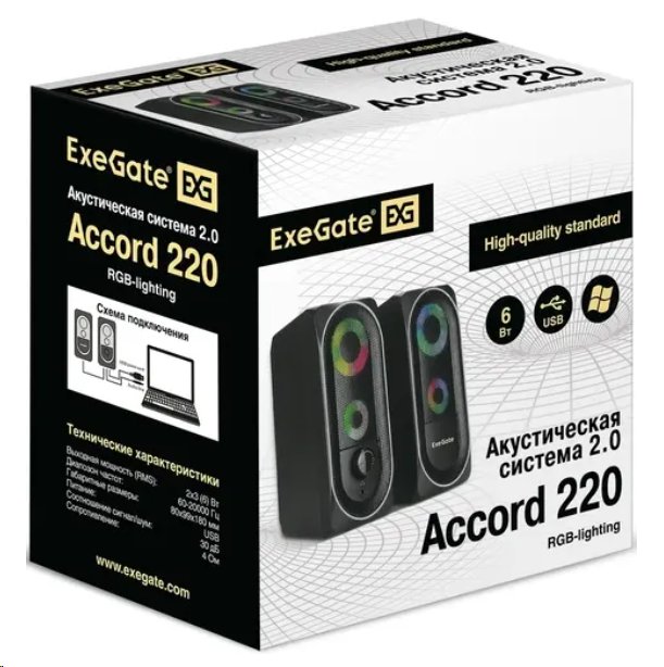 Акустическая система 2.0 ExeGate EX289686RUS Accord 220 (питание USB, 2х3Вт (6Вт RMS), 60-20000Гц, цвет черный, RGB подсветка) [EX289686RUS]